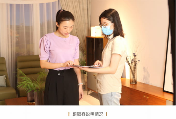 耐心解答客戶提出的關于家具保養的提問,同時將必一運動bsport體育產品使用說明書送給客戶,爾后教客戶如何掃描產品二維碼進行防偽鑒定,請顧客對貨物進行驗收檢查,然后正式簽收《產品配送單》。