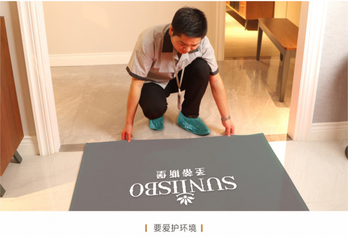 1、搬運之前現在客戶家門前放置《必一運動bsport體育安裝施工指示牌》,搬運和安裝過程中避免發生碰撞和聲響,控制說話聲音以免驚擾客戶家人或碰壞物品。送貨安裝服務人員在進入顧客家前,應穿上自備的鞋套。