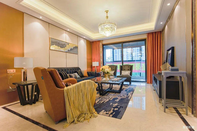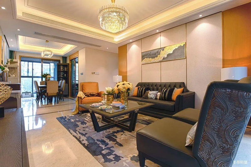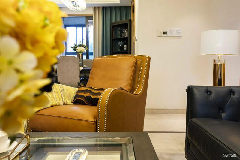 極具時尚設計格調(diào)的透明茶幾,不僅中和了沙發(fā)的厚重感,還令空間更為清透明亮!