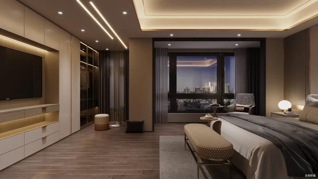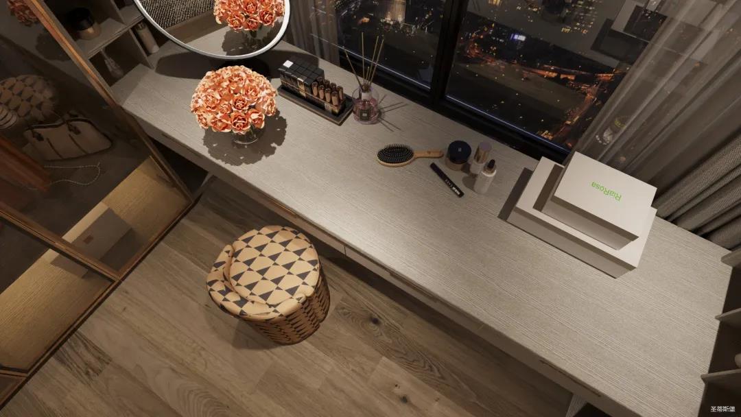 臥室空間整體以護(hù)墻板定制為主,整體設(shè)計(jì)注重空間簡約、自然,沒有繁雜的裝飾。結(jié)合業(yè)主對理想家的想象,采用暖色調(diào)來襯托溫馨實(shí)感,延伸業(yè)主對家的定義,用最質(zhì)樸的木紋融合極簡線條平鋪的形式,體悟自然的溫度,為都市生活帶去不一樣的體驗(yàn)感。