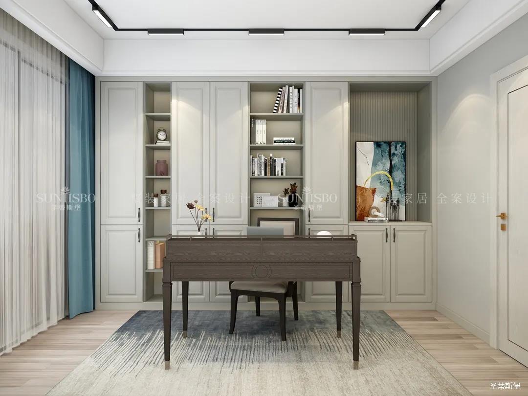 書房以黑白灰,作為打造舒適家居的經(jīng)典配色。深灰書桌,淺灰地毯,仿古白定制書柜,三者搭配帶著與生俱來的時尚藝術范。整體沒有絢麗多彩的顏色,卻總能令人耳目一新,只一眼便愛上這舒適的閱讀空間。