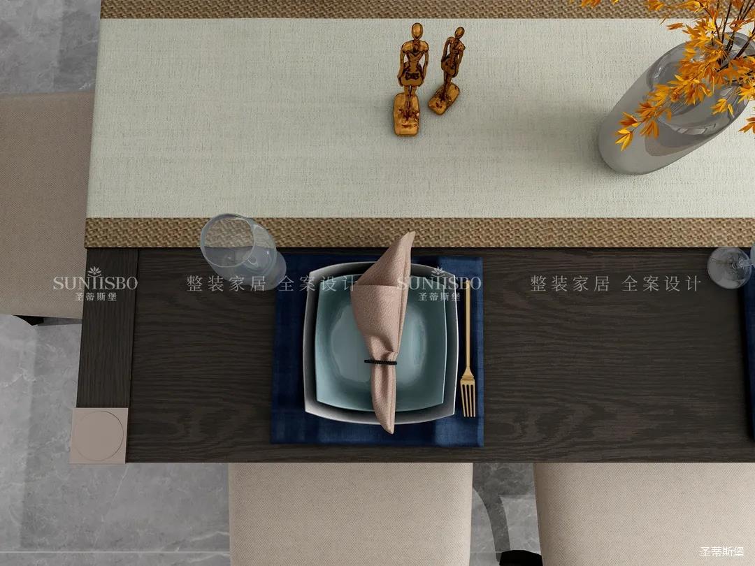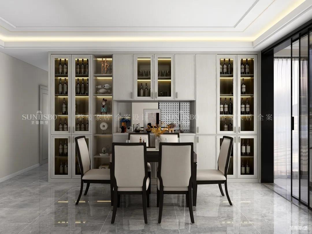 餐廳和客廳以大橫廳的形式展開,設(shè)計師將實木、玻璃、皮質(zhì)、金屬等看似相互排斥的元素相互重組,讓餐廳呈現(xiàn)多元式的輕奢氛圍。深淺色彩,對稱型的定制柜,都讓空間形成強有力的質(zhì)感對比。無論是午餐窗外的車水馬龍,還是晚宴的點點繁星,都能給屋主帶來良好的就餐體驗。