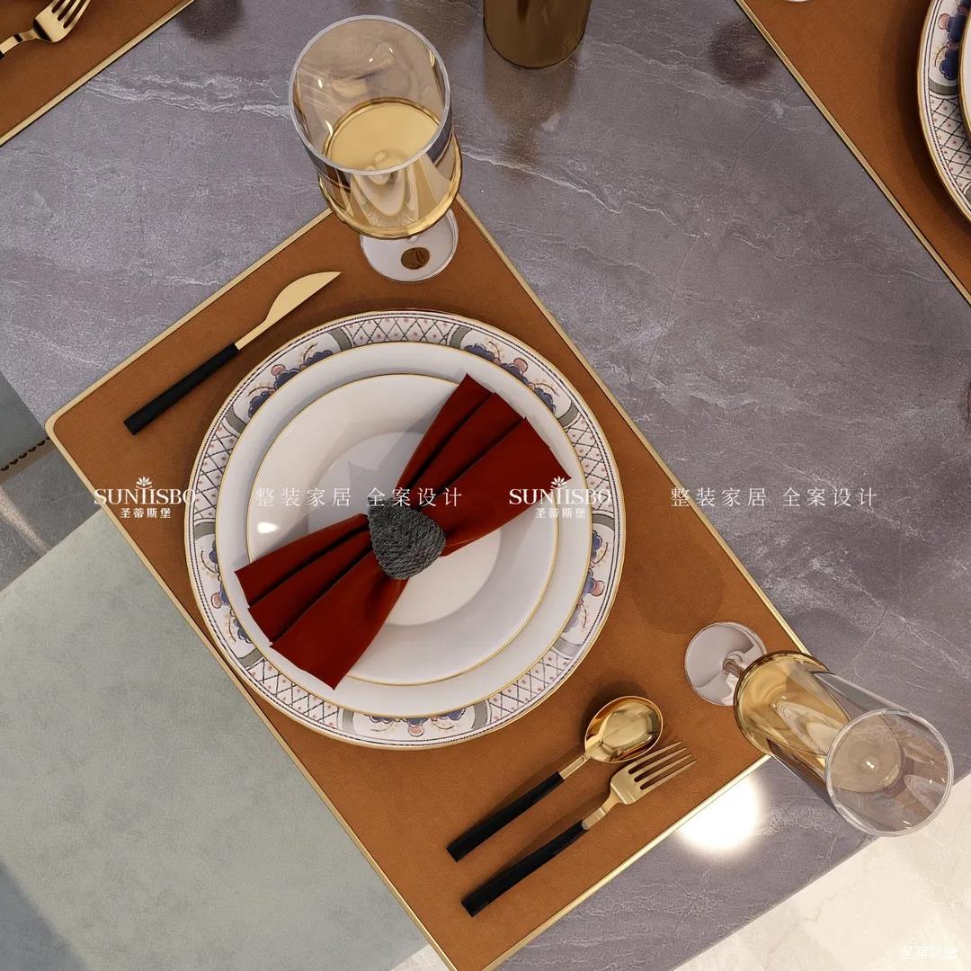 設計師通過對居者在空間中互動關系的細致設想,遵循經典的簡奢風格設計,細膩考究人居與空間關系,反復推敲布局,將客餐廳橫列排布,增加居者的交流互動。