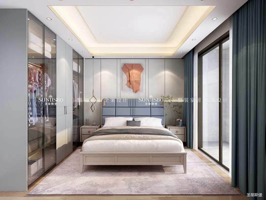 通過空間的疊加與縮放、玻璃透明屬性及肌理變化,塑造臥室簡奢均衡的氣質,也讓整個房間靜謐又典雅,給業主以無限回味的安定感和幸福感。