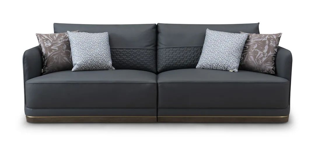 簡約的造型搭配流暢的金屬線條鑲嵌,不僅避免了沙發的沉悶,也為客廳增添了些許靈動。整體設計簡約而不簡單,經典耐看,搭配同款茶幾,與茶幾的金屬拉扣相呼應,輕松營造出客廳的高級感。