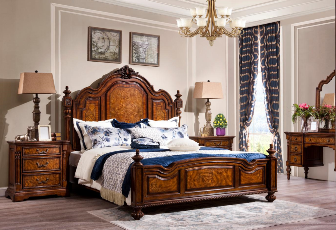 運用實木的制作工藝來體現美式的文化,整個面板采用實木單板鑲嵌工藝,以樹瘤特殊的木紋進行拼接,加上精致的涂裝工藝,給人一種古典、奢華的感覺。