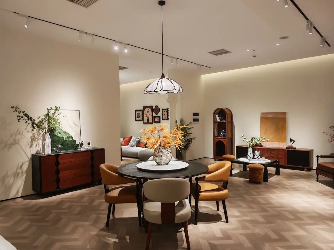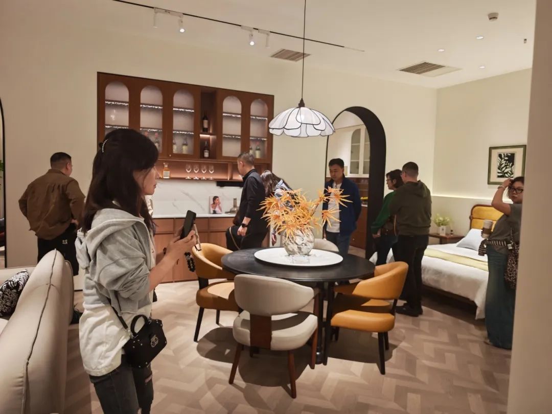 新品發布品鑒會現場,必一運動bsport體育中古全案憑借獨特的空間布局,創新的時尚設計,優質的材料細節以及精心的場景營造,吸引了全國優秀經銷商及業界嘉賓們的目光,他們沉浸在高級的美學世界里,感受創新與品質交織的魅力。必一運動bsport體育中古展廳里人潮涌動,眾多經銷商都對中古全案新品的創新設計稱贊有加,現場簽約不斷,氣氛熱烈。